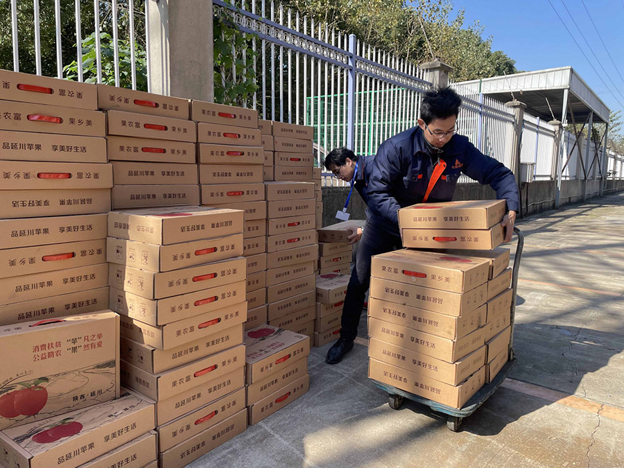 为深入贯彻习近平总书记在十九大报告工作中实施乡村振兴战略的重要思想,进一步加强企业定点帮扶乡村紧密联系。2021年11月9日,kaiyun再一次开展了和陕西延川县杨家圪坮镇孙家塬村的点对点“扶贫助农,振兴乡村”活动。早在去年,公司所在地的云亭商会与该村签订“我在延川有棵(亩)苹果树”的认购活动,确定了为期三年的定点帮扶活动,让当地农民不再为苹果销路而发愁。